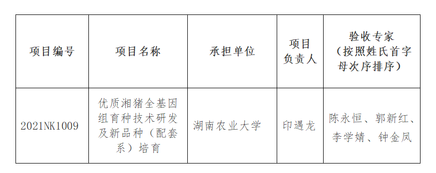 根据《湖南省科技创新计划项目验收管理工作规范》(湘科计〔2020〕29号)有关规定,省科技事务中心于3月19日组织专家对2021年立项的种业创新项目开展了现场综合验收工作。按照评审公开、公正、公平原则,现将验收专家名单予以公示: