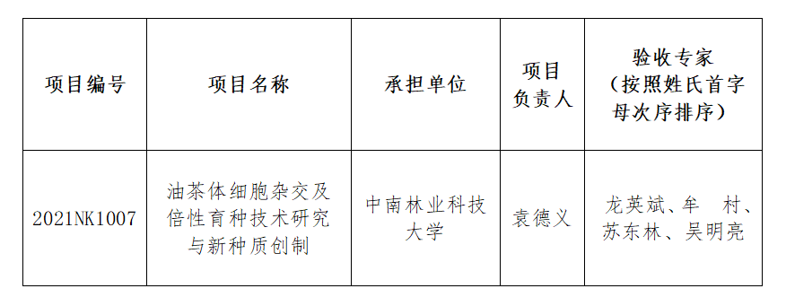 根据《湖南省科技创新计划项目验收管理工作规范》(湘科计〔2020〕29号)有关规定,省科技事务中心于4月29日组织专家对2021年立项的种业创新项目开展现场综合验收工作。按照评审公开、公正、公平原则,现将验收专家名单予以公示: