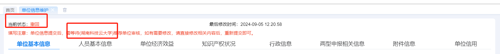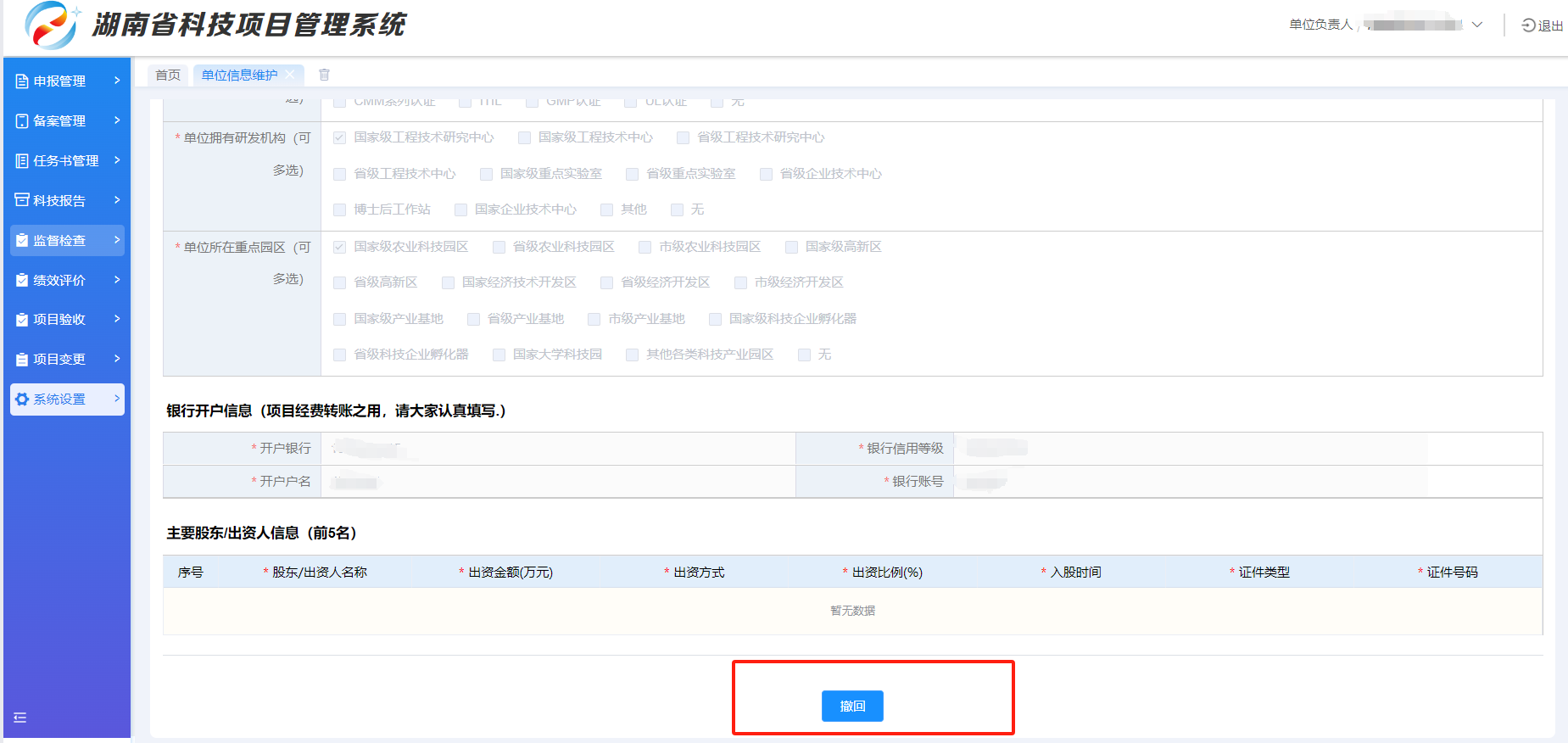 注:如单位信息维护页面无法编辑,请将页面拖拽至底部,点击撤回即可。